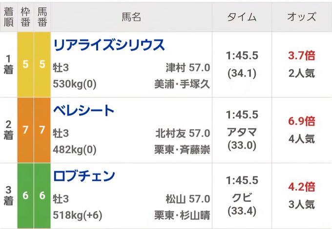 梅田・京橋 おたくばぁ えんじぇるこはく@おやすみ中@AGLpro_kohaku·6時間上がり1位だと言うのに…😭 パパ位置取り下げすぎたかんじ? 出遅れが原因? でも俺はまだシャンパンカラーを諦めない。彼の血は残したいのだよ。ドゥラメンテの血が入っているから。引用正方形のプロフィール画像netkeiba@netkeiba·6時間【#東京新聞杯】 全着順、上がりタイム等はこちら。 https://race.netkeiba.com/race/result.html?race_id=202608020411… きさらぎ賞に続きこちらも、直線長い東京にもかかわらず、上がり4位以下馬が上位入線。G1馬シャンパンカラーは自身最速32秒8の脚を繰り出すも4着まで。246