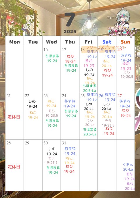 固定堺東【ぼどたん】ボードゲームコンカフェ@bodotansh·7月後半シフト🗓️ 7/18-19は初のフリコスイベント! 何のコスプレか楽しみですね〜✨ 8/1-2は私服イベント!推しの素が見れるチャンス!🥺 事前予約でお目当てのキャストとお待ちしています💕 キャストリスト↓ https://x.com/i/lists/1768967089753411893…15579