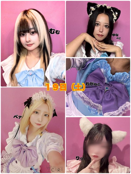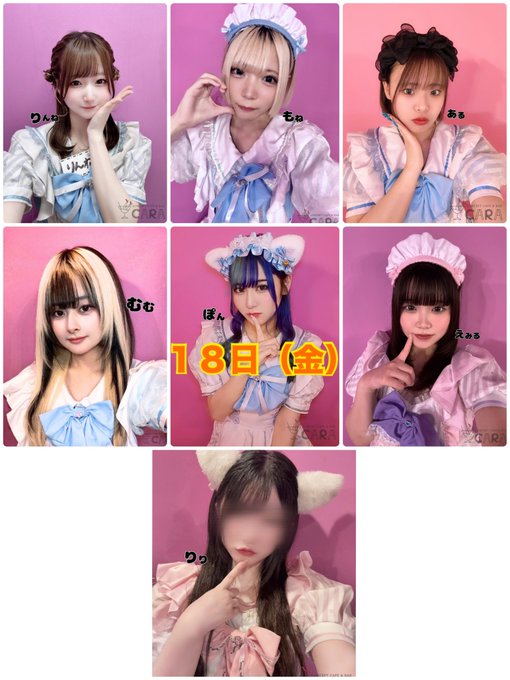 【大阪京橋コンカフェ】 CARA(カーラ)/キャスト募集中!🍹@cara_concafe·7月18日 ほんじつのおきゅイン りんね@rinne__cara もね@mone_CARA ある@ARU_CARA むむ@mm0_CARA ぽん@pon_CARA えみる@emiru_cara りり@ri_nyan_cara134586