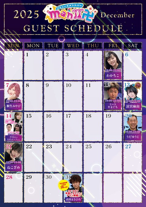 梅田・京橋 京橋コンカフェGreif(コンカフェ)☕️コンセプトカフェ☕️GREIF【コンカフェ】さんがリポストユダヤ@sinji0605·11月28日アミューズメントバーmanji卍より 12/31 19時より 高田まさひろ会長がゲスト決定! 2025年最後の夜、一緒にカウントダウンしましょ〜✨ 年末感謝祭として、お会計20%OFFでさせて頂きます😀😀 よろしくお願い致します🙇引用ユダヤ@sinji0605·11月11日manji卍の12月のゲストです! 12/5 19〜23時 わかちこ 12/7 19〜23時 桐生みやび 12/12 19〜23時 ミートやまぐち 12/13 18〜23時 涼宮麻由🎂 12/14 19〜23時 やさしい麻雀の企業リーグチーム (なが、ピンフちゃん、ざきねぇ) 12/20 18〜23時 うだゆうじ🎂 12/21 18〜23時 ねこざめ28825