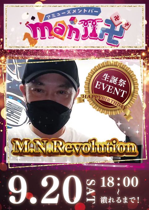 ☕️コンセプトカフェ☕️GREIF【コンカフェ】さんがリポストアミューズメントバーmanji卍【公式】@bar_manji6·9/20(土)18:00〜のゲストは関西ザンリーガーM.N.Revolutionさんです👐 M.N.Revolutionさんmanjiが初のBARゲストとなります‼️ しかも今回は誕生祭イベントです🎂🎉 一緒にお祝いしましょう♪🥂 皆様のご来店お待ちしております✨M.N.Revolution1413890