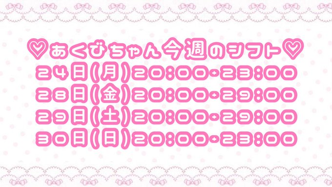 梅田・京橋 おたくばぁ えんじぇる固定こはく@AGLpro_kohaku·今週の こはく のシフト🥂 ͛ ✧• ─────────── •✧ 24日(月) 全ツッパ🎲🎯 20:00~23:30 25日(火) えんじぇる🪽🤍 20:00~23:00 26日(水) えんじぇる🪽🤍 20:00~23:30 28日(金) えんじぇる🪽🤍 20:00~5:00 ✧• ─────────── •✧ 今週もお待ちしてます9