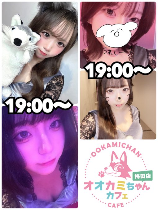 梅田・京橋 オオカミちゃんカフェ梅田店オオカミちゃんカフェ梅田店@ookamichanumeda·2月8日(日) 本日の出勤情報🐺 19:00~ ❤うみ❤まお ❤ももか❤ひなた 20:00~ ❤らん❤しおん ❤れいな❤いゔ ❤こと❤あすか #オオカミちゃんカフェ #梅田 #コンカフェ8