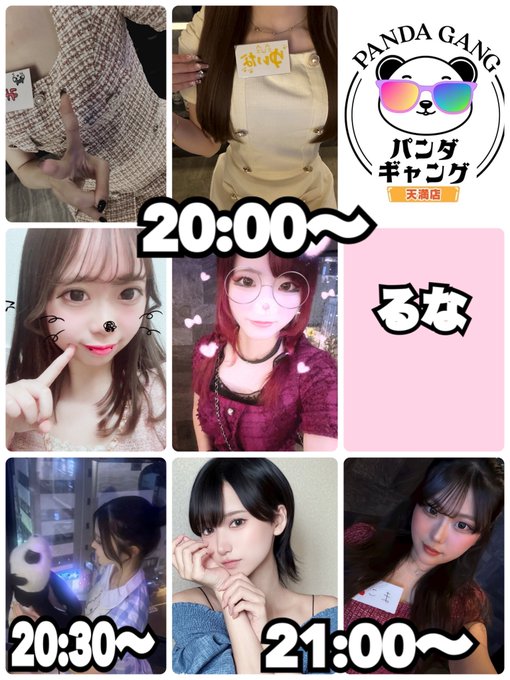 梅田・京橋 パンダギャング天満店パンダギャング天満店@panda_tennma·2月6日(金) 本日出勤の女の子🐼 20:00~ ❤みに❤うい ❤すずり❤るな ❤ゆいな 20:30~ ❤すぃ 21:00~ ❤れな❤まこ #パンダギャング #天満 #ガールズバー8