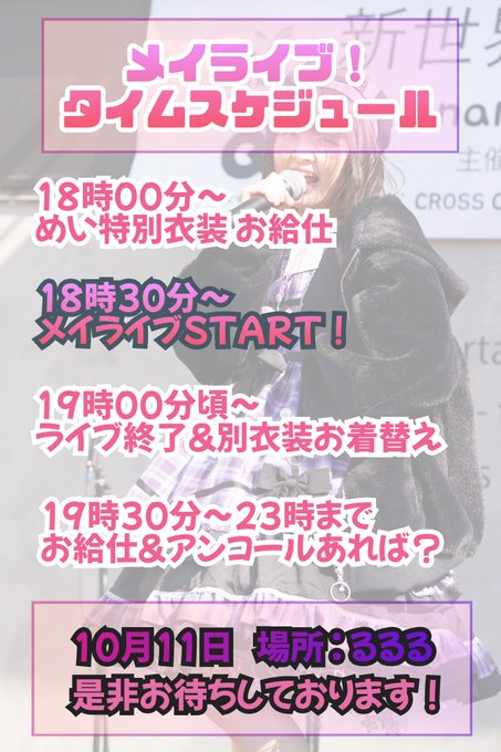 てんさいゆむち!8.14休@yumu_idolhorse·15分普通にセトリ平成激アツ曲多くて楽しみすぎる😵🔥ゆむちまも見に行きます💨 全員集合してね❣️初のめいの単独イベント❣️引用めい(ひつじでもあった人)@mei_idolhorse·34分お待たせしました!!!!! メイライブの詳細公開です( ˘ω˘ 🫶) このような タイムスケジュールになってます✨ 18時半にはメイライブを 約30分間ほど めいの推薦アイドルソングを 何個か披露させて頂きます🎤 是非お待ちしてます🌟19253