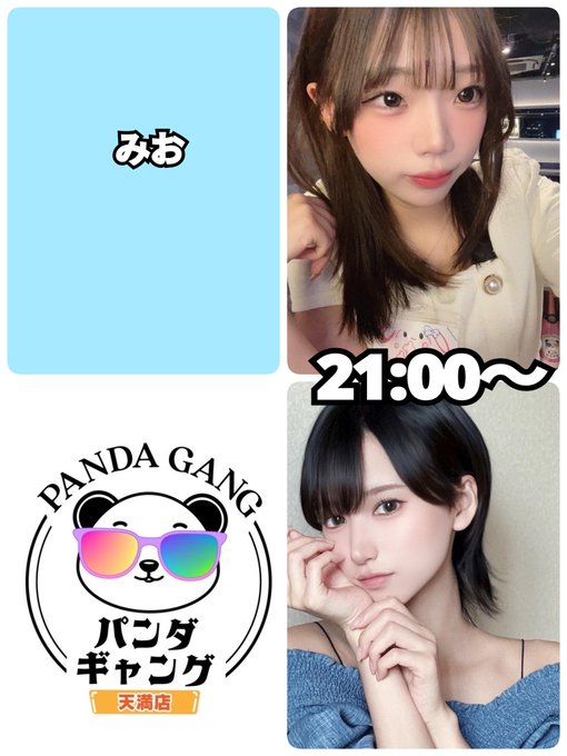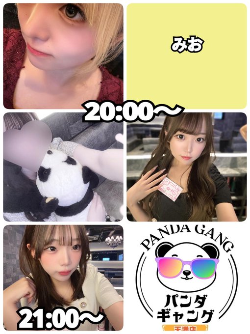 パンダギャング天満店@panda_tennma·(木) パンダギャング🐼 本日出勤の女の子❤ 20:00~ ❤すぃ❤みお 22:00~ ❤れな❤らな #天満 #ガールズバー #ガルバ #コンカフェ #コンカフェ嬢と繋がりたい182