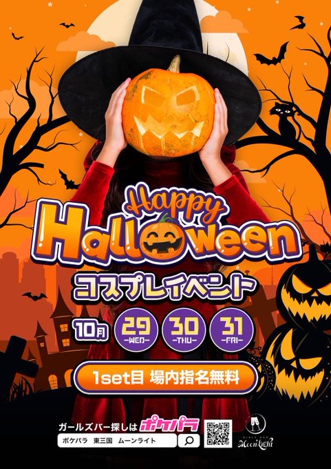 梅田・京橋 【東三国】Moon Light(ムーンライト)👼てん🪽Moonlight@ten_moonlight·今日から3日間、ハロウィンイベント スタートです❗️ #東三国 #新大阪 #ガールズバー5293