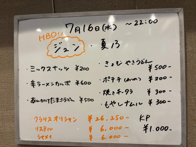 クラリス(アニソンCafe&BAR)@cafeclaris·22時までばーたいむ!ジュンわんおぺでお待ちしてるよ〜天気悪いけどきてね☔️6500
