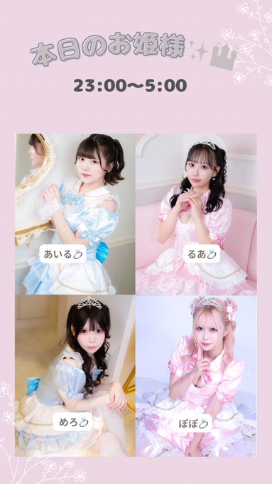 unchateau🎀アンシャト-@unchateau_30·本日のお姫様✨🏰 るあ@unchateau_rua えま@unchateau_emma うさ@unchateau_usa あいる@unchateau_Airu お待ちしております૮ . ̫ .🎀ა23406