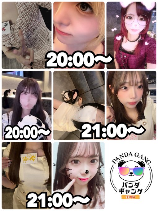梅田・京橋 パンダギャング天満店パンダギャング天満店@panda_tennma·12月10日(水) 本日出勤の女の子🐼 20:00~ ❤みゅう❤ゆいな ❤ゆき❤みに 21:00~ ❤りの❤すぃ 22:00~ ❤れな #パンダギャング #天満 #梅田 #大阪 #コンカフェ #ガールズバー #ガルバ145
