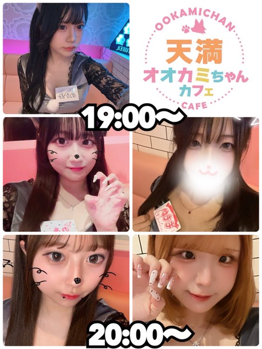 梅田・京橋 オオカミちゃんカフェ天満店オオカミちゃんカフェ🐺関西¦天満店¦大阪コンカフェ🧡@ookamicafetenma·12月9日(火) 🐺本日の出勤情報🐺 19:00~ 🩶ももか🩶あかね 🩶のあ 20:00~ 🩶うた🩶むぎ 🩶ゆなた🩶りさ 🩶もこ🩶れんか 🩶かなで 21:00~ 🩶ゆの🩶ひみつ 🩶まな #オオカミちゃんカフェ #梅田 #天満 #大阪 #コンカフェ96