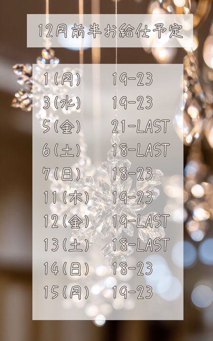 固定みけ🐾コンカフェ@pinmon_u_mike·12月前半の出勤予定です⟡.*29577