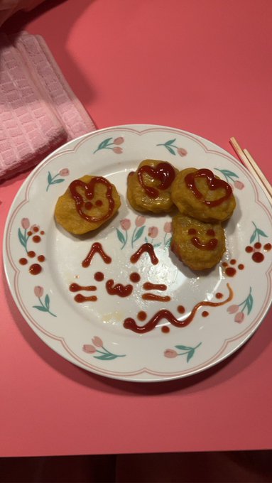 ぁゎてゃんっ@nana_sann_73_·遠隔ぅうう!!いつも影で支えてくれてる仲良しごしゅさまからっ!! ナゲットでお絵描きー!!🐰下手くそになっちゃった(´>∀