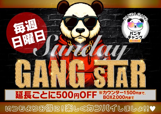梅田・京橋 パンダギャング天満店パンダギャング天満店@panda_tennma·今週末のイベント情報🐼 2/22(日) 日曜限定イベント☀ ※イベント内容について、詳しくは画像をご確認ください❕ ☆火・水・木は早割イベントを開催しております ご来店お待ちしております♡ #パンダギャング #天満 #ガールズバー2