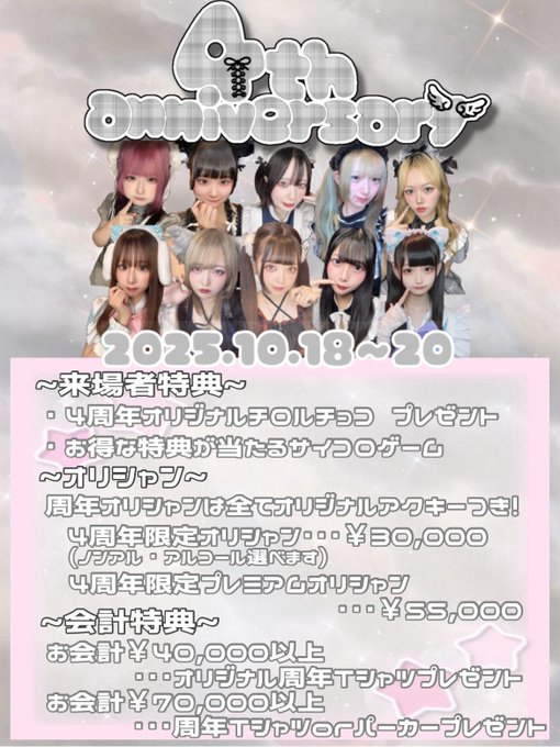 梅田・京橋 カワイイこんかへ屋さん JELLY BEANSかにぱんさんがリポストコンカフェ🍬JELLY BEANS🍬@CAFE_JELLYBEANS·✨じぇりびが4周年を迎えます✨ 10/18(土)〜10/20(月)に周年イベントを開催しますので是非お待ちしております🙇 #コンカフェ #コンカフェ大阪 #コンカフェ梅田681,142