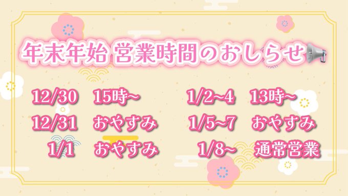梅田・京橋 競馬Cafe&Bar IDOL.HORSEみ く@miku_idolhorse·8時間それとこちらです! 結構変則的なのでお気を付けて👍🏻 アイドルホースもちはやふるも同じです🫡 2日から元気いっぱいに待ってますよ✨良いお年をとあけおめさせて̳^. ̫ .^ ̳♡⃛引用てんさいゆむち!29休@yumu_idolhorse·9時間返信先: @yumu_idolhorseさん年末年始のお知らせ📢(両店舗共通) 変則的な営業のため、ご確認お願いします!116471