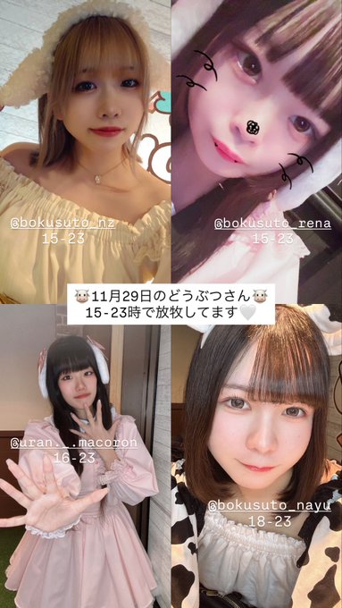梅田・京橋 牧場Story牧場Story@大阪梅田コンカフェ@_bokujo_story·【11月29日のどうぶつさん🦙🤍】 のぞみ @99_bkst 15-23 れな @bokusuto_rena 15-23 うらん @uranx_0macoron 16-23 なゆ @bokusuto_nayu 18-23 15-23時で放牧してます🌱 #大阪 #梅田コンカフェ #コンカフェ #コンカフェ営業23151