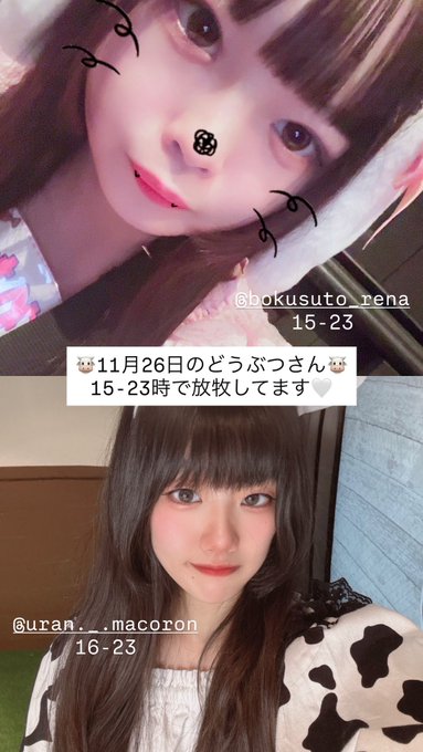 梅田・京橋 牧場Story牧場Story@大阪梅田コンカフェ@_bokujo_story·【11月26日のどうぶつさん🦙🤍】 れな @bokusuto_rena 15-23 うらん @uranx_0macoron 16-23 15-23時で放牧してます🌱 #大阪 #梅田コンカフェ #コンカフェ #コンカフェ営業24141