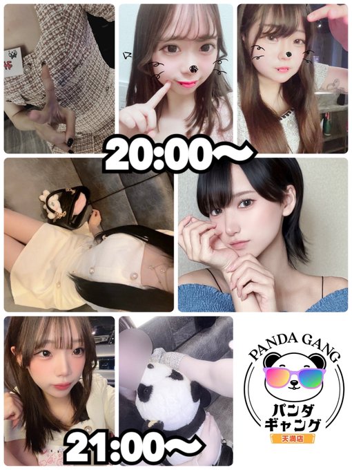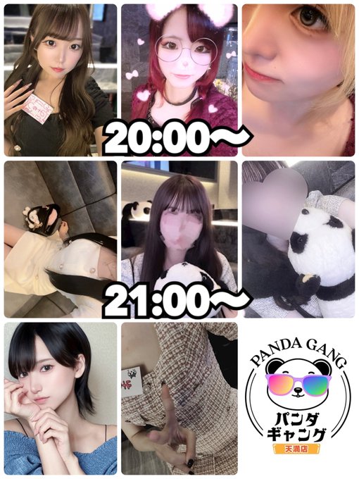 梅田・京橋 パンダギャング天満店パンダギャング天満店@panda_tennma·11月26日(水) 本日出勤の女の子🐼 20:00~ ❤みゅう ❤すずり❤ゆき 21:00~ ❤りの❤すぃ ❤りこ ❤れな❤みに #パンダギャング #天満 #梅田 #大阪 #コンカフェ #ガールズバー #ガルバ21
