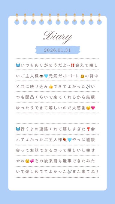 その他中部 おれのメイド四日市ひなの@hinano_oremei·6時間おわってました! Twitterから会いに来てくれて沢山褒めてくれたり、食べたかったご飯一緒に食べたり、チェキの落書き褒めて貰えてとっても嬉しかった🌟 しばらく会えないご主人様もいて寂しいけど、元気に待っておりますので‼️ぜったいまた会おう🤝 次は7(土)18時〜23時でいます!🐕 ͗ ͗引用ひなの@hinano_oremei·2月4日.˚⊹⁺‧┈┈┈┈┈┈┈┈┈┈┈┈‧⁺ ⊹˚. 初恋は濃いめのココア 口元に残るきみがすきだよ♡ .˚⊹⁺‧┈┈┈┈┈┈┈┈┈┈┈┈‧⁺ ⊹˚. 18-23でいます❕110253