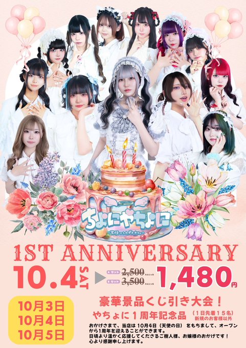 ꒰ঌ ちよにやちよに ໒꒱@yachoni_·꒰ঌ今日のお給仕天使達໒꒱ 周年前夜祭🪽 営業時間17:00-last #岡山コンカフェ #岡山1376