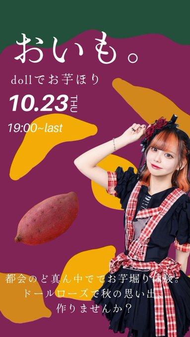 dollrose 岡山コンカフェ@dollrose2025·10月のイベント情報🧸✨ 〜10月23日〜 .*・゚いもほりday ⟡.·*. #岡山コンカフェ #岡山 #コンカフェ1391