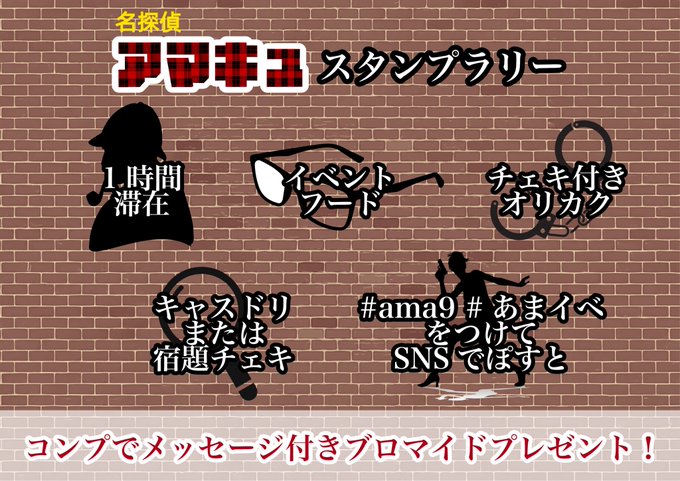 ama9(あまきゅー)【公式】沖縄コンカフェ|キャスト募集中@ama9_official·5時間🕵♀ 名探偵アマキュ 探偵コスウィーク 🕵♀ #あまイベ スタンプラリー!! 明日から12日(日)までは探偵コスウィーク🔍 スタンプラリーコンプリートで、 メッセージ付きブロマイドをプレゼント☕ オンラインはこちらから✨ ▷さらに表示引用ama9(あまきゅー)【公式】沖縄コンカフェ|キャスト募集中@ama9_official·10月4日🕵♀ 名探偵アマキュ 探偵コスウィーク 🕵♀ #あまイベ イベントメニュー紹介🔍 ☆真実はいつもひとつ!(カツ丼) 探偵といえばカツ丼⁉️ガッツリ謎を解き明かしたい方にオススメです🌟 ☆迷宮の紅茶(キャストのおすすめティー) x.com/ama9_official/…2349