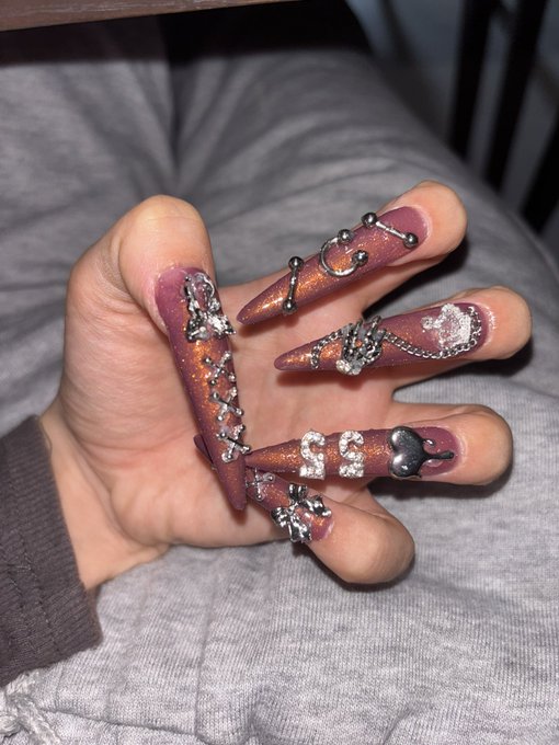 ころん@3nexl_n·今回はゴテゴテネイルだよー♡5時間かかったよー、おやすみ222535