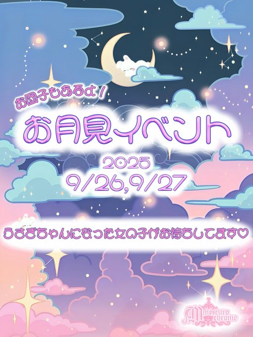 Mercurochrome🏥コンカフェ富山駅前@_Mercurochrome_·🎀Mercurochrome🎀 📢お月見イベントのお知らせ🎑 9月26.27日 20:00-2:00 お団子たべてお月見しませんか? 色んなうさぎちゃんがお待ちしております🐇🌕58730