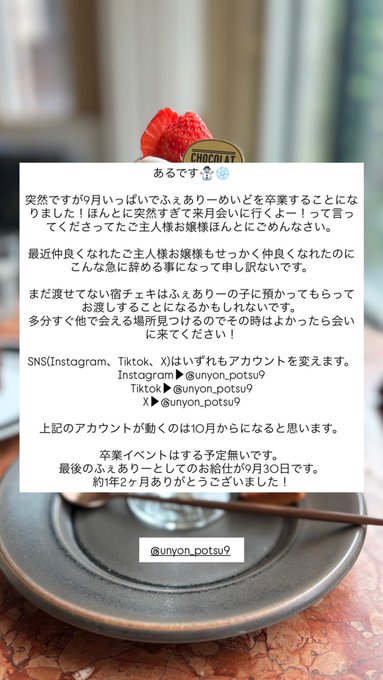 ひなの@hinano_oremei·9月17日おわり!会いに来てくれたお嬢様ありがとう🫶23時までおれず、申し訳ない( ; ; )元気になった時またお酒飲もー!って言ってくれたのもうれしかったー! 画像はお腹を空かせた私に口当たりのいいものをとヨーグルトを分けてくれたそちゃとごしゅのやさしさです、周りにこんなに沢山の優しさがあるとは…引用ひなの@hinano_oremei·9月17日おきゅいんー! たかーいついんてーるです今日は🐰 いいねたくさんくださいくださいくださーーーいこじき😫215655