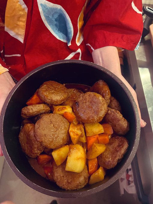 かな@coffret那覇 13日にイベント🎂@kana_coffret·月見煮込みハンバーグです🍳2520346