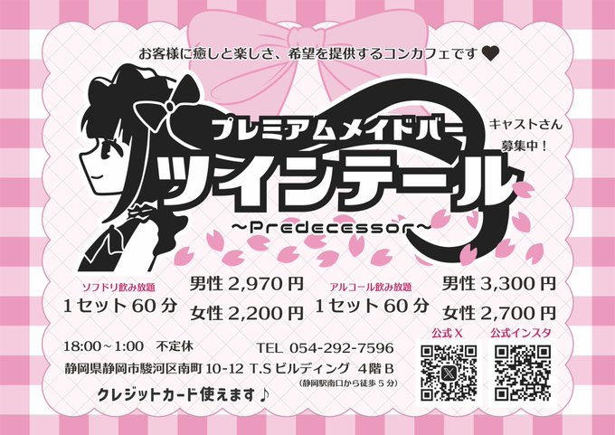 ういは🌸ツインテール@uiha_TT·9月7日今日撮った😸引用プレミアムメイドバー🌸ツインテール (静岡コンカフェ)@TT_Maid·9月7日本日は受付終了いたしました! ご来店誠にありがとうございました!✨488