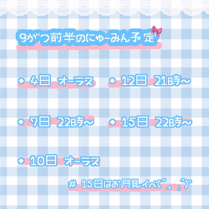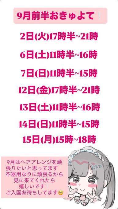 固定るか@ruka_oremei·9月のおきゅ予定 †໒꒱ 全て18:00-23:00です!待ってます ᐢ•̀ .̫ •́ ੭2120625