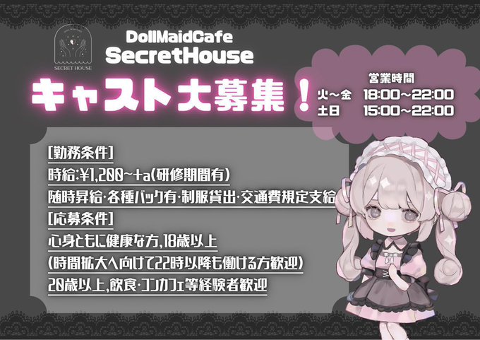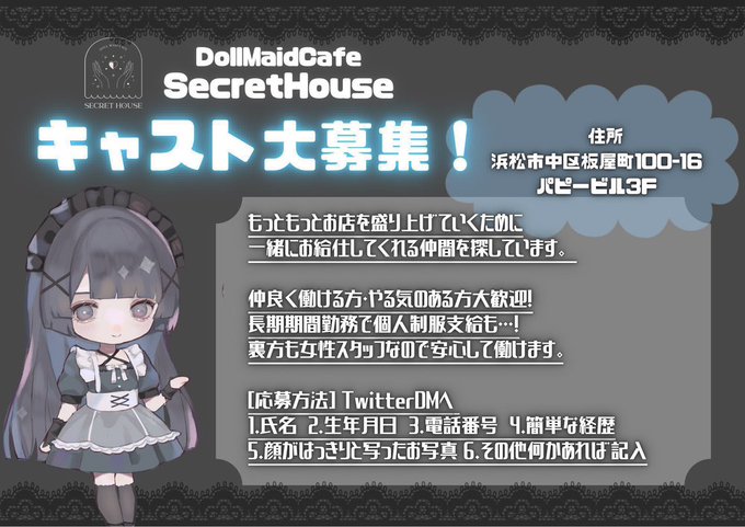 姫宮らぶ †❤︎@SH_1ovely·7月20日ドールさん大募集してます🎶 いっしょにお屋敷でお給仕しましょう🎵引用シクレ&GG求人*浜松コンカフェ@Recruit_SH_GG·7月20日🎀ドール大募集🎀 一緒にお給仕してくれる仲間を大大大募集しております❕ ご応募はこちらまで@Recruit_SH_GG お待ちしております🧸♡ #SecretHouse #浜松 #豊橋 #静岡 #メイドカフェ #コンカフェ #求人3141,162