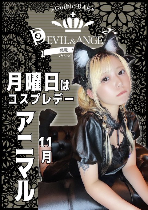 沖縄・那覇 GothicBAR デビル&エンジェル海乃星さぽ🫧デビエンメイド@sapo_devi_oki·20分引用GothicBar デビル&エンジェル@devil_angel_oki·10月28日🦨🩶デビエン11月 月コス🦨🩶 毎週月曜は【アニマルコスプレDay🐩】 月曜日限定で、天界と地獄で過ごすアニマルたちのコスプレでお出迎えします! バードルちゃん達が過ごす日常に触れられちゃう🎶 💊メイドリンクや限定チェキ・ブロマイドが当たる🎯ガチャ新設‼️💊 20時から2時まで開館中✨13