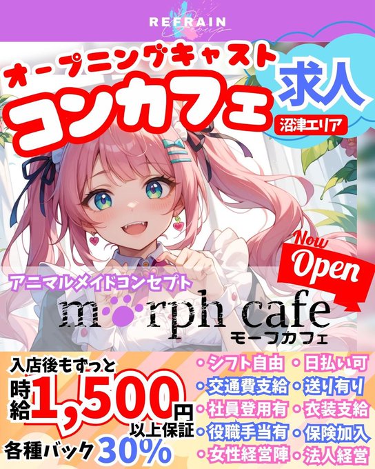 三島⛩コンセプトカフェ&バー 『Re:フレイン』@Refrain_mishima·【📣求人募集中📣】 Re:フレインでは現在一緒に働いてくれるキャストを大募集⭐️ オリジナル衣装とアイドルステージ風の内装が最高に可愛い当店でぜひお仕事をしませんか❓❓ 系列店も同時にご応募可能です🎵 ⬇️公式LINEから簡単に応募できます⬇️ https://lin.ee/HRKDoGw12393