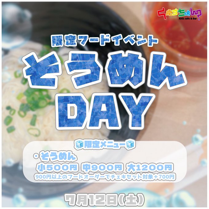 あかり🔰くえすちょん?さんがリポストIDOLcafe&Bar くえすちょん?|コンカフェ富山|アイドルライブ毎日開催中🎤@Bar_question_·7月12日(土) ⭐️アイドルの手料理Day⭐️ 今回のメニューは【 そうめん 】です🎐🌻 🧊限定フード🧊 ☆そうめん 小500円 中900円 大1200円 ※数量限定でのご提供になりますので予めご了承ください。 皆様のご来店お待ちしております♪ #くえすちょん #富山 #コンカフェIDOLcafe&Bar くえすちょん?|コンカフェ富山|アイドルライブ毎日開催中🎤10282,028