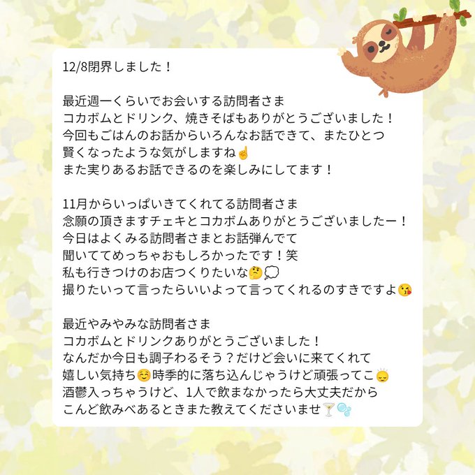 沖縄・那覇 メイドカフェ coffret 沖縄那覇店メイドカフェcoffret沖縄那覇店🌺コフレさんがリポストひなた🍀@みくすろいど@hinata_mixloid·28分おきゅいんです‼️ コフレさんゲスト出勤ですよ~‼️ 緊張するのでめめちとちと酒入れてきました‼️実は仲良しメンバーと働けるの嬉しすぎますよ🎶なんと‼️遠隔も用意してもらったらしく‼️とても嬉しい🎶 27時まで‼️めめちとよしみてさんときらりんとむくさんとみゅんさんとかなさんとお待ちしております✨引用メイドカフェcoffret沖縄那覇店🌺コフレ@naha_coffret·6時間12月10日(水)19:00〜3:00(L.O 2:30) みくすろいど×coffret キャスト交換デー💚🧡 22:00-ひなた&めめちがcoffretにおきゅいん⚡️ りん&みこはみくすろいどへ❕ コラボ2ショットチェキ販売あり‼️ 🍀ひなた/🍥めめち/よしみて/むく/かな/みゅん/きらりん #いんしゅふぁんくらぶ #ふれふれこふれ622304