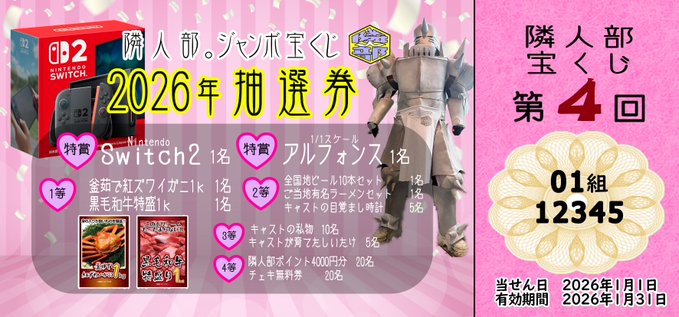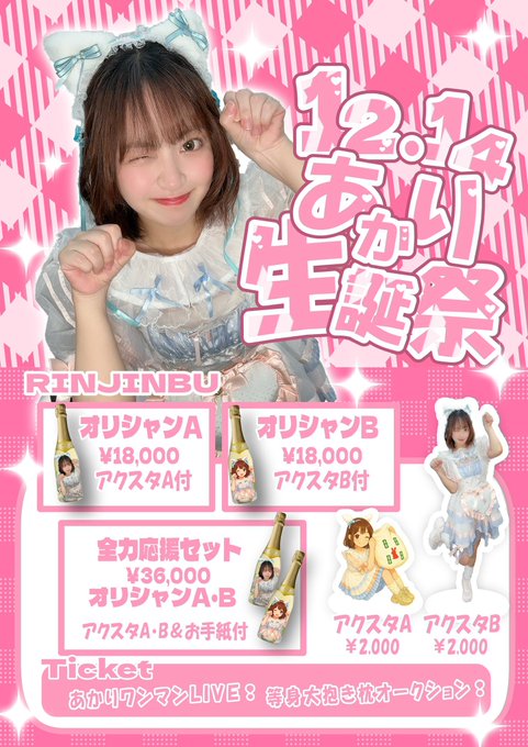 沖縄・那覇 アニメ・コスプレ隣人部。コスプレ・アニメ隣人部。【公式】@Rinjinbu_oknw·4時間【あかりオリシャン受付開始】 🍾『オリシャンA』 アクスタA付き 🍾『オリシャンB』 アクスタB付き 各¥18,000 🍾🍾『全力応援セット』 アクスタA.B、お手紙付き、ライブで歌ってほしい曲も一緒に記入お願いします ¥36,000 締切:12/7㈰24:00まで 予約方法:公式LINEまで↓ https://lin.ee/z0MtDxX引用コスプレ・アニメ隣人部。【公式】@Rinjinbu_oknw·11月29日【12月イベント】 ⭐️12月期間 『隣人部ジャンボ宝くじ』 ¥3000で1枚進呈 ⭐️12/2㈫ 『犬の日』 ⭐️12/9㈫ 『テトリスday』 ⭐️12/14㈰ 『あかり生誕祭2025』 ⭐️12/17㈬ 『ヒロアカday』 ⭐️12/24㈬ 『サンタコスday』 ⭐️12/25㈭ 『シスターday』 ⭐️12/31㈬ 『とおり生誕祭2025』 『カウントダウン』414635