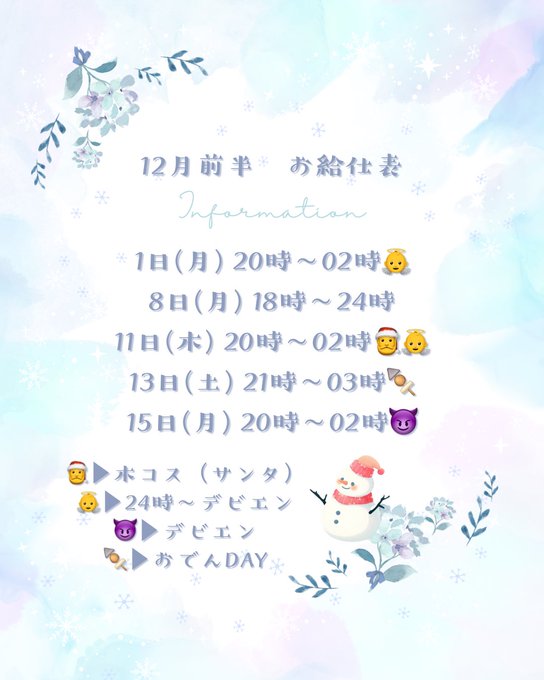 岡山 ちよにやちよに固定琥珀🐺💤🪽@khk____xxxq·【12月前半お給仕表】 会いにおいでよ〜✌️289
