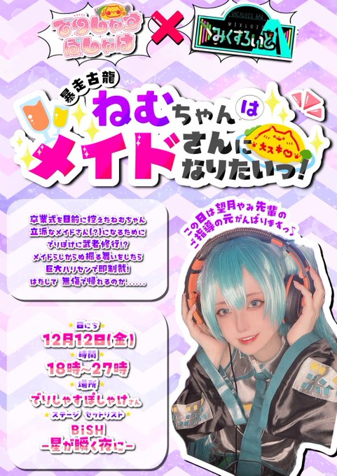 沖縄・那覇 でりしゃすぽしゃけ望月やみ🔪でりぽけメイド@yam_doll·5時間責任持って巨大ハリセンでメイドを叩き込みます ねむさんが卒業式当日、メイドらしからぬ行為を行った場合はぼくの責任なのでぼくのことを巨大ハリセンで制裁してください👾 あとがこわいです🐰⸝꙳*引用VOCALOID BAR みくすろいど@mixloid_naha·8時間【予告】 2025/12/12(金) 20~26時 卒業まで1ヶ月、突如メイドの道を切り開くことになった暴走古龍に希望はあるのか─… 1日限定❕でりしゃすぽしゃけさんにてガチメイド修行❕❕ 🎰ギャンブル王国出身メイド🎰 【👾原初を刻むネム・ゼナ👾】 満を持して! キュインキュイン♡おきゅいん🚨💸1114848
