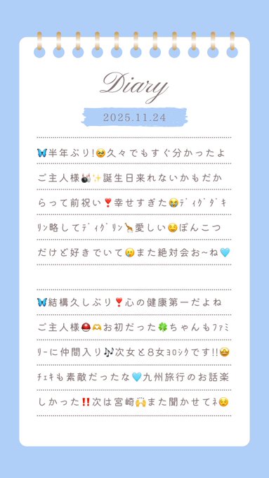 沖縄・那覇 GothicBAR デビル&エンジェル曲角ひだり✝️デビエンメイド@hidari_devi_oki·11月24日✝️おきゅおわ✝️ クイズ大会したり、恋愛観トークしたり、うちの子披露したりで楽しい夜でした✨ 仮名、まがまがとひだだでなんか禍々しい感じなので可愛い名前募集しよかなと思います✋ レスキュー、ショット、チェキなどもありがとうございました🙏 NEXT▶︎11/28 22-20:06引用曲角ひだり✝️デビエンメイド@hidari_devi_oki·11月23日✝️おきゅいん✝️ 本日は待ちに待ったMayMei届いてʓ ꩢ お目当てだった子がでてくれたのでめちゃんこ可愛がりたいと思います💋💕 三連休の真ん中なので今日はどんなに飲んだって許される。よろしくお願いします。 #だー活 x.com/devil_angel_ok…7146