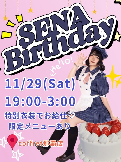 沖縄・那覇 メイドカフェ coffret 沖縄那覇店固定みこ@coffret那覇@coffret_miko·29日セナさんお誕生日です! 可愛すぎるから来て😭💕2146