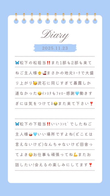 沖縄・那覇 でりしゃすぽしゃけ九尾ねつき🍁@でりぽけメイド@netuki_delipo·15時間昨日と今日のおきゅおわです🐾 沢山のご帰宅本当に本当にありがとうございました✨✨ ドリンク・オムライス・チェキ・ショット・遠隔オムライス・プレゼントありがとうございました🦊🎶 とーーっても楽しい3連休2日目‼️ 明日はいよいよ3連休最終日 最後まで2525で楽しくお給仕頑張るぞー🔥引用九尾ねつき🍁@でりぽけメイド@netuki_delipo·21時間コンッ…🦊 本日、九尾ねつきお屋敷におります🐾 昨日はパンプちゃんの入学式でとーーっても楽しかったです💪🔥 またスクワットやりたいです… 本日は3連休中日‼️‼️ 本日もお屋敷で共に楽しみましょう🍻✨ 本日24時までご帰宅お待ちしております🍁 x.com/deli_poke/stat…113332