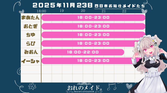 その他中部 おれのメイド四日市らぴ@rapi_oremei·6時間すいません、今日お休みいただきますㅠㅠ 勘違いで出勤入れていないものだと思っていましたㅠㅠご迷惑おかけします💦引用おれのメイド。四日市@近鉄四日市駅前メイドカフェ&BAR💫@orenomaid_yo·19時間11/23のおれメイ四日市✨ 明日もご帰宅お待ちしております٩(ˊᗜˋ*)و3208