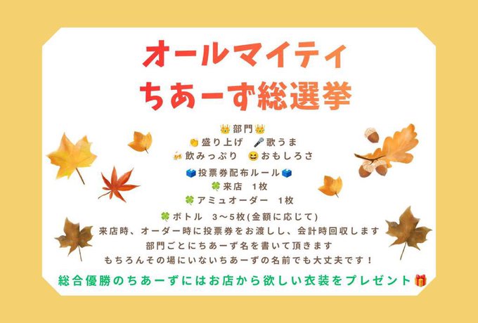 沖縄・那覇 でりしゃすぽしゃけむすびもぎゅ🍙@デビエンメイド@mogyu_delipo·1時間おきゅいん🎶 今日は〜〜〜!ういちゃんの生誕祭〜〜!🔱✨ おめでとおめでとおめでとーーー!!✨🔱✨🔱 当日オリシャンも何本かあるらしいです^_^予約間に合わなかったご主人様必見💡 2時までご帰宅お待ちしてます!引用GothicBar デビル&エンジェル@devil_angel_oki·8時間😈11月29日(土)20:00〜2:00👼🏻 🎉本日は 喜多川うい 生誕祭 🎉 スペシャルナイト開幕です✨ 🚪本日のお給仕バードル🚪 ⌛️20:00 🎉喜多川うい@ui_delipo 🎉 むすびもぎゅ@mogyu_delipo 一ノ瀬あま@Ama_devi_oki 甘音ぴあの@piano_devi_oki 夢咲あも@amo_devi_oki 海乃星さぽ@sapo_devi_oki x.com/devil_angel_ok…1215177