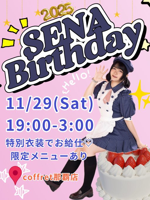 沖縄・那覇 メイドカフェ coffret 沖縄那覇店メイドカフェcoffret沖縄那覇店🌺コフレ@naha_coffret·11月29日(土)19:00〜3:00(L.O 2:30) 💎🎂セナ生誕イベント🎂💎 お菓子の妖精をイメージした可愛い特別衣装🧚♀️🍰 👑セナ/るる/よしみて/むく/みこ/みゅん/エマ 🍽限定メニュー アクスタ付きオリシャン🥂 セナ手作りパンナコッタ🍮 #メイドカフェ #コンカフェ #バイト #募集 #応募 #沖縄 #那覇17218