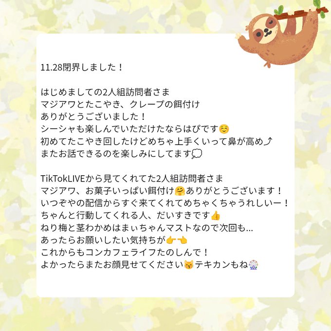 高松・徳島・高知・松山 Featherねこむら店長@Feather@nekomura_423·いつもありがとう😭 幸せをたくさん嬉しいです🫶 来月もよろしくね!585