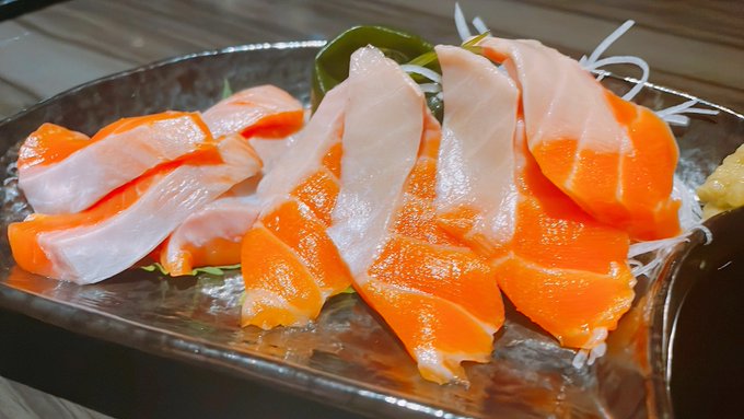 熊本・宮崎 メイドカフェQTメイドカフェQT@QT_98_·🌟系列情報⋆͛📢 好評につき先月に引き続き 🐟キングサーモン ¥880- 🐟 今回は2尾仕入れ❣️ 刺身定食・丼 etc @FoodandBar8816223