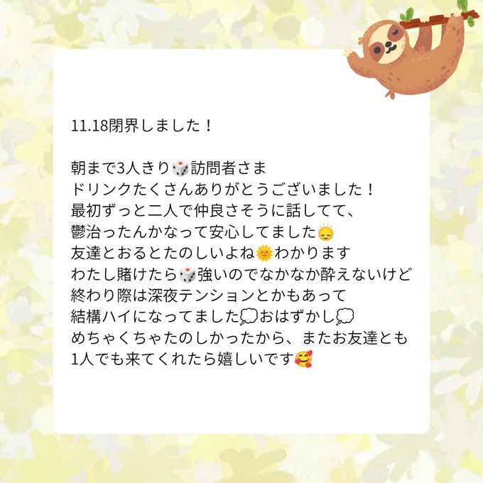 岐阜 Rosera Cafe鵺々うてん🥀ロゼラカフェ - RoseraCafe - 岐阜コンカフェ@RoseraCafe_04·おきゅおわ🌧 たくさんの初めましてさんに会えて楽しかったです❕ぜひ二度目ましてもしましょう(◜ᴗ◝ ) 次回は11月24日(月)18:30-25:00です🥀26